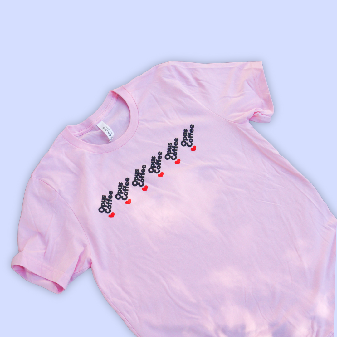 Pretty in pink! Our popular Valentine’s Day design is now on this classic pastel pink T-shirt. The design is a twist on our retro drip logo featuring a heart drip. Brew, pour, sip, love.